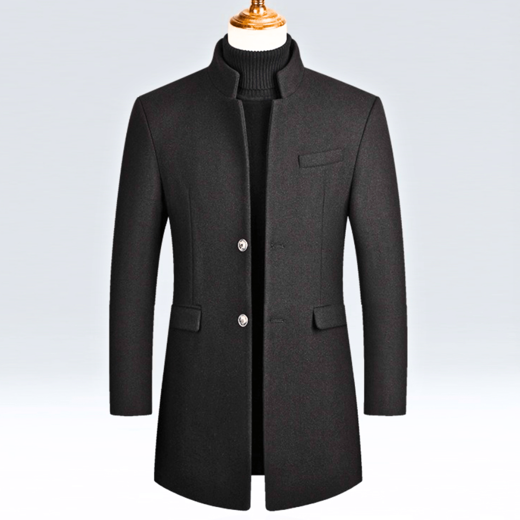 Paneling along the torso builds a clean, athletic profile, and the stand collar rises just high enough to meet cold air with discipline.